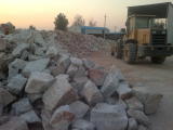 鏟車把石英礦石裝進震動篩